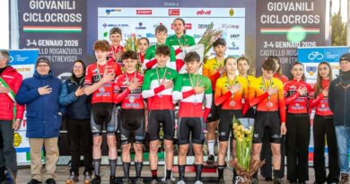 Ad Ancona, nel giorno di San Silvestro, ha riscosso un notevole successo la manifestazione dedicata al ciclismo invernale sui prati con la regia del Pedale Chiaravallese in quello che è stato l’ultimo appuntamento ciclistico dell’anno solare 2016.Il freddo pungente non ha impedito ai 200 partecipanti di potersi esprimere al meglio sul percorso leggermente collinare e abbastanza veloce ricavato nel prato attiguo allo Stadio del Conero e al Pala Rossini come banco di prova fondamentale per gli imminenti campionati italiani in Veneto a Silvelle di Trebaseleghe nel prossimo weekend.Ricchi di spunti interessanti le gare riservate alle categorie giovanili ed agonistiche nel segno di Luca Giovanni Giannandrea (Amici Della Bici Junior), Matteo Fiorini (Pedale Chiaravallese) e Alessio Morbidoni (Pedale Chiaravallese) tra i G6 uomini, Eleonora Ciabocco (Ciclisti Junior Matelica) e Giada Stella (Spoleto Bike) tra le G6 donne, Lorenzo Masciarelli (Spelt Cycling), Riccardo Ricci (UC Petrignano) e Raffaele Mosca (UC Petrignano) tra gli esordienti uomini, Giorgia Negossi (Mtb Santa Marinella-Cicli Montanini), Valentina Friggi (Lu Ciclone) e Asia Ranucci (UC Città di Castello) tra le esordienti donne, Gabriele Torcianti (Pedale Chiaravallese), Enrico Scaranello (Drake Team Cisterna) e Federico Bracci (Olimpia Team Bike) tra gli allievi uomini, Gaia Realini (Spelt Cycling), Letizia Brufani (Lu Ciclone) e Giorgia Simoni (OP Bike Porto Sant’Elpidio) tra le allieve donne, Mario Gabriele Di Mattia (Cerrano Outdoor), Alessandro Cataldi (Raven Team) e Daniele Pelliccioni (Prd Sport Factory Team) tra gli juniores uomini, Caris Cosentino (Lu Ciclone) tra le juniores donne, Stefano Valdrighi (Cicli Taddei), Antonio Folcarelli (Race Mountain Folcarelli Cycling Team-Pedale Apriliano) ed Emanuele Di Giovanni (Digiotek Team) tra gli open uomini.Ottime le performance espresse dai rappresentanti della fascia amatoriale 1-under 45 con il podio conquistato da Leonardo Caracciolo (Centro Bici Team Terni), Lorenzo Cionna (Bici Adventure Team) e Matteo Sbei (Bikers In Libertà) tra gli élite sport, Pasquale Iachini (Team Rodas), Emanuele Serrani (Pedale Aguglianese) e Daniele Pallini (Team Go Fast) tra i master 1, Matteo Donati (Bikeland Team Bike 2003), Fabrizio Iaconi (Bikers In Libertà) e Gianni Zanetti (Team Zanetti) tra i master 2, Massimo Folcarelli (Race Mountain Folcarelli Cycling Team-Pedale Apriliano), Giovanni Filippo Raimondi (Raven Team) e Stefano Migliorini (Cicli Taddei) tra i master 3.Obiettivo traguardo raggiunto e con soddisfazione per i corridori appartenenti alla fascia amatoriale 2-over 45 con il podio ad appannaggio di Massimo Viozzi (New Pupilli Uisp), Marco Roviglioni (Uisp Umbria) ed Emanuele Carosi (Uisp 0019) tra i master 4, Gianni Panzarini (Drake Team Cisterna), Mario Quattrini (Asd Gs Pontino Sermoneta) e Luca Michettoni (Bikers In Libertà) tra i master 5, Marco Gobbetti (Cicli Cingolani), Davide Foresto (Team Fausto Coppi Fermignano) e Rosario Pecci (Abitacolo Sport Club) tra i master 6, Franco Di Vita (Avis Sassoferrato), Adamo Re (Bikers In Libertà) e Sandro Chieruzzi (Avis Amelia) tra i master 7, Mario Giulianelli (Mondobici Fermignano), Gianni Damen (New Pupilli Csi) e Paolo Tempestilli (Adria & Sibilla) tra i master 8, unitamente alle rappresentanti del gentilsesso Marika Passeri (Due Ponti Bikelab), Nathalie Poirier (Pro Bike Riding Team) e Cinzia Zacconi (New Pupilli Uisp) che hanno colto le prime tre posizioni nella categoria master donna.Gli sforzi organizzativi sono stati premiati con una competizione perfetta nel suo svolgimento e con il gradimento dei partecipanti anche per tramite di Germano Peschini (presidente del Coni Marche), Lino Secchi (presidente del comitato regionale FCI Marche), Massimo Romanelli (vice presidente vicario FCI Marche), Sergio Scocco (responsabile settore fuoristrada FCI Marche), Fabio Luna (delegato provinciale Coni Ancona), Tania Belvederesi (presidente comitato provinciale FCI Ancona) e Carlo Roscini (presidente FCI Umbria) presenti nel corso della gara e della cerimonia di premiazione.Classifiche complete al link