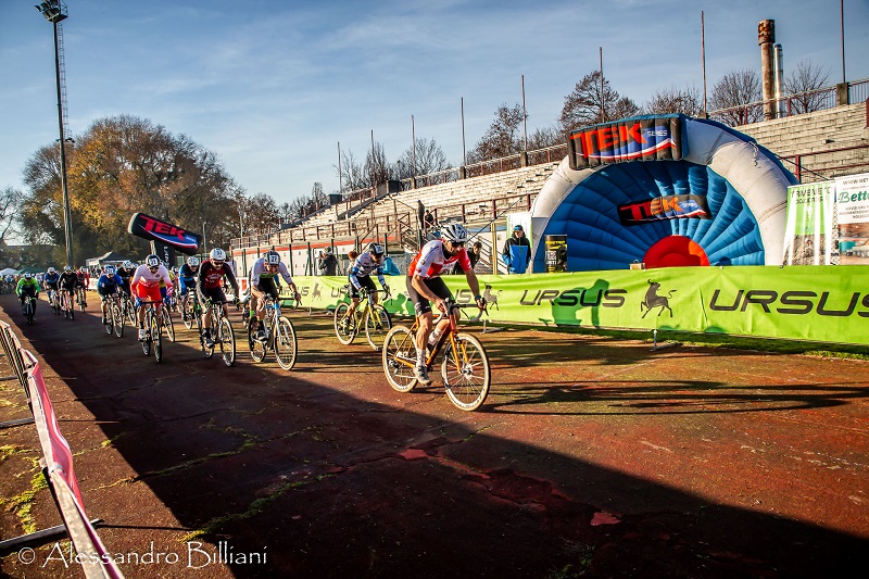 Cadoneghe (PD) – Un bel sole e una temperatura gradevole per il periodo hanno accolto i più di 300 ciclocrossisti provenienti da tutta Italia (Sardegna inclusa) impegnati nella 4ª edizione del Ciclocross del Tergola, organizzato dalla Sc Vigonza Barbariga a Cadoneghe (PD), tappa del Trofeo Triveneto di Ciclocross FCI. Il tracciato, rinnovato, si è snodato lungo i prati adiacenti allo stadio Martin Luther King, una location molto apprezzata da atleti e tecnici anche questa stagione, entusiasti di aver trovato a Cadoneghe un ciclocross moderno e tecnico al punto giusto, nonostante ci si trovi in pianura a pochi passi dalla città di Padova. È stata una giornata interamente dedicata al fuoristrada, con le categorie master ad aprire le danze alle 9.15.