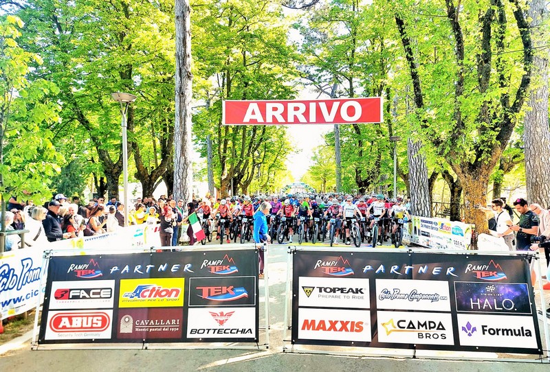Il via alle 10:00. Gara da subito serrata a tre, e dopo una cinquantina di minuti dalla partenza è l’atleta locale Alessio Agostinelli (Leecougan Basso Factory Racing) a condurre con Nicola Furiasse (Scott Pasquini Biking Team) e Riccardo Ciuccarelli (Asd Swatt Club). Ad inseguire, con un minuto di distacco è Franco Casella (Bike Therapy A.S.D.) con Alex Tozzi (Cetilar Nutrition – Cervélo).