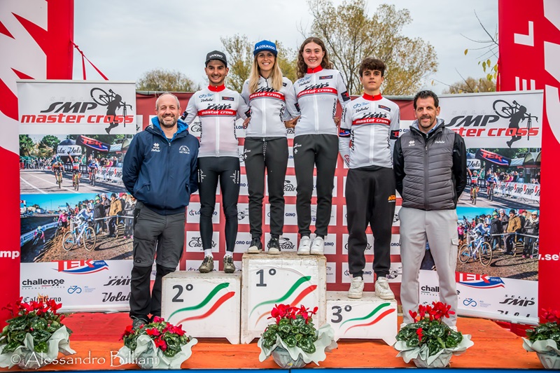 Anche la gara femminile ha avuto una padrona assoluta. La vice campionessa italiana Elite Rebecca Gariboldi (Ale Colnago Team) si è subito messa a tenere alta l’andatura e, dopo la fase iniziale, è riuscita a distanziare tutte le avversarie. Secondo posto per la giovane juniores trentina Nicole Azzetti, compagna di squadra, che ha confermato l’ottimo stato di forma che le ha consentito di essere convocata dal Commissario Tecnico Daniele Pontoni per i campionati europei della settimana prossima. Terza piazza per la trevigiana Beatrice Fontana (Fas Airport Guerciotti). Per Nicole Azzetti è arrivata anche la maglia di leader di categoria nel Selle Smp Master Cross.
