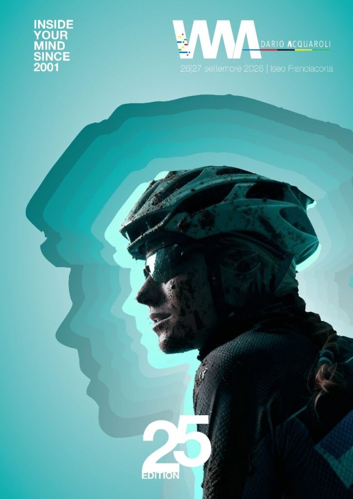 Contestualmente, viene presentata oggi la nuova linea grafica insieme alla locandina ufficiale dell’edizione 2026. L’immagine cattura immediatamente l’anima della gara: al centro spicca il volto di una giovane biker ricoperta di fango, simbolo autentico della fatica, della determinazione e della passione che da sempre contraddistinguono La Dario Acquaroli. Attorno al suo profilo si sviluppano cinque sagome concentriche, ognuna dedicata a un quinquennio di storia, fino a comporre idealmente il percorso delle 25 edizioni. Un richiamo visivo potente che apre le porte al motto dell’evento, “Inside your mind since 2001”, non solo un claim, ma una dichiarazione di identità e di spirito.
