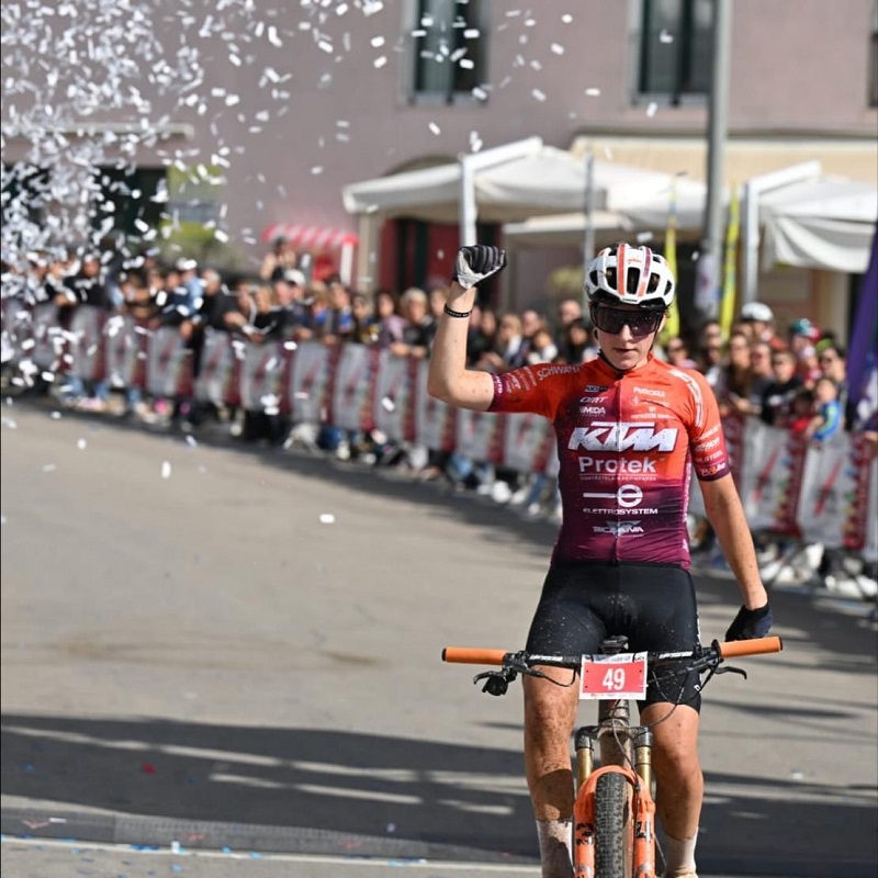 Nella prova HC Under 23, i nostri atleti sono stati protagonisti fin dalle prime pedalate. Otto giri da affrontare: nei primi quattro il gruppo si sgrana progressivamente, con i portacolori KTM sempre nel vivo della corsa. A metà gara Matteo Siffredi aumenta il ritmo e si avvantaggia, inseguito da un atleta svedese. Dietro, Fabio e Giulio restano nel gruppo degli inseguitori. A due giri dal termine i due italiani si lanciano all’attacco e provano a ricucire sul duo di testa, ma la situazione resta invariata fino al traguardo. Negli ultimi 150 metri Matteo lancia la volata decisiva, stacca l’avversario e taglia il traguardo a braccia alzate. A pochi secondi seguono Giulio Peruzzo, terzo, e Fabio Bassignana, quarto.