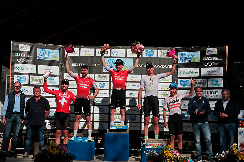 Tra gli Elite, dopo il giro di lancio di circa 1000 metri, si è formato un gruppone di testa compatto rimasto tale fino agli ultimi km del 7° giro: alla guida si sono alternati i fortissimi atleti svizzeri, come il campione europeo Lars Forster, il campione del mondo Mathias Flückiger, ma anche il nr.1 del ranking mondiale UCI Fabio Püntener e Filippo Colombo, entrambi in forza allo storico team Scott-Sram Racing. La sfida si è rivelata tosta ma anche tattica, con gli ultimi km che hanno regalato momenti di alto spettacolo con i fuoriclasse a sprigionare tutta la potenza da purosangue. Dall’ultima curva prima del traguardo è sbucato proprio Mathias Flückiger, che ha staccato di quanto bastava gli inseguitori Forster, giunto 2°, e Fabio Püntener, 3°, per un podio tutto rossocrociato. Terza vittoria a Nalles per Flückiger, che afferma: “Come sempre si è rivelata una gara dura, con salite toste in cui ho potuto fare la differenza, sono davvero contento.”