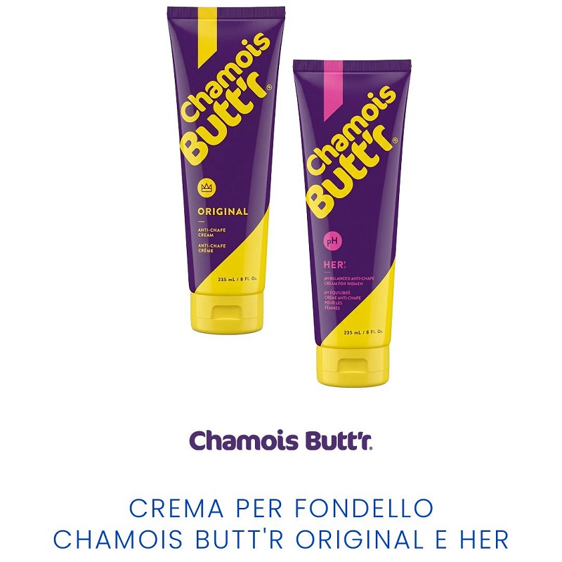 Macini chilometri? Prova Chamois Butt’r Original e Chamois Butt’r Her, le creme anti-sfregamento per fondello che migliorano il comfort in sella, prevenendo e lenendo irritazioni e sfregamenti della pelle. Si lavano facilmente, non danneggiano l’abbigliamento tecnico e sono formulate senza parabeni, ftalati, glutine o fragranze artificiali.