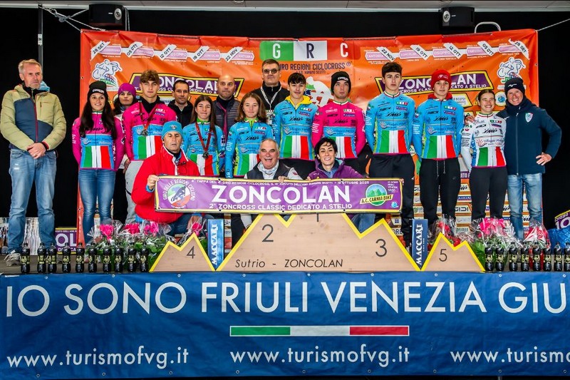 – Il Monte Zoncolan, simbolo assoluto del ciclismo su strada, ha accolto oggi la carovana del Giro delle Regioni Ciclocross per la sua quarta tappa stagionale, la 2ª ZonCross Classic, gara internazionale di classe UCI C2 e terzo appuntamento del Campionato Italiano per Società FCI. L’evento, dedicato alla memoria di Stelio, ha rappresentato un momento di grande sport e partecipazione, con oltre 500 atleti iscritti (350 tra agonisti e amatori e oltre 150 giovanissimi) e un pubblico entusiasta che ha persino avuto la possibilità di sorvolare gratuitamente il tracciato in elicottero, godendo di una vista mozzafiato sulla montagna e sul percorso con voli messi a disposizione dal partner ELIFRIULIA.